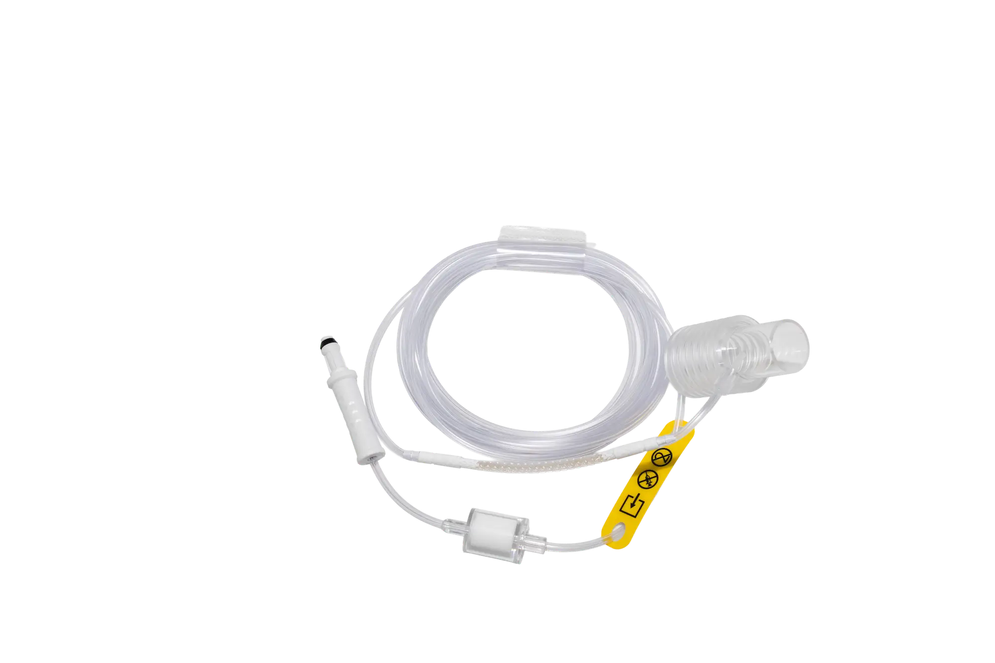 A Linha de Amostragem de Gases GlobalTec conduz o gás exalado do paciente até o monitor, permitindo análises precisas de CO₂ e outros parâmetros respiratórios em procedimentos clínicos e anestésicos.