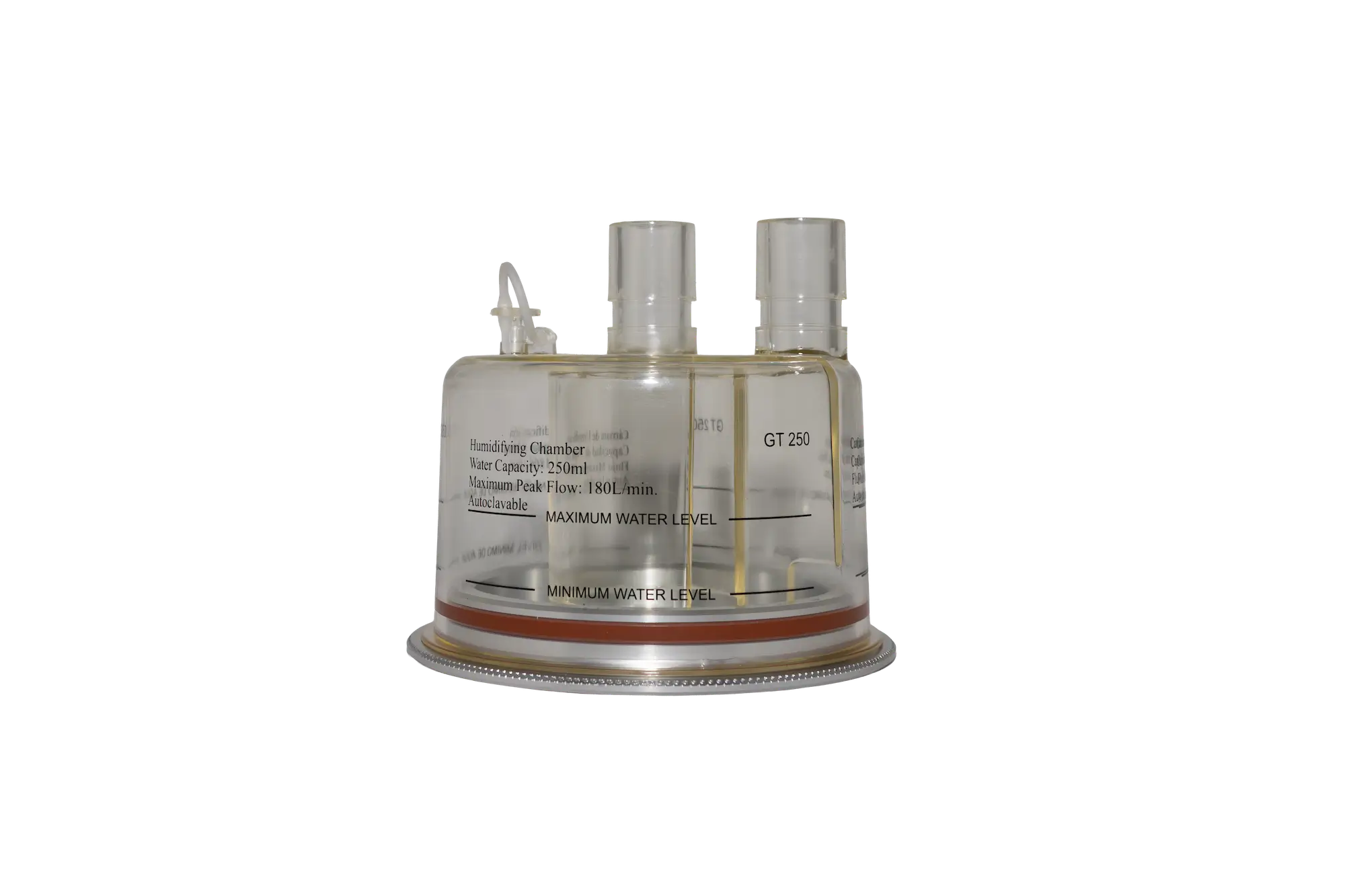 O GT250 – Reservatório Reutilizável para Umidificador GlobalTec foi desenvolvido para proporcionar umidificação adequada dos gases inspirados em pacientes sob ventilação mecânica invasiva, não invasiva ou oxigenoterapia.