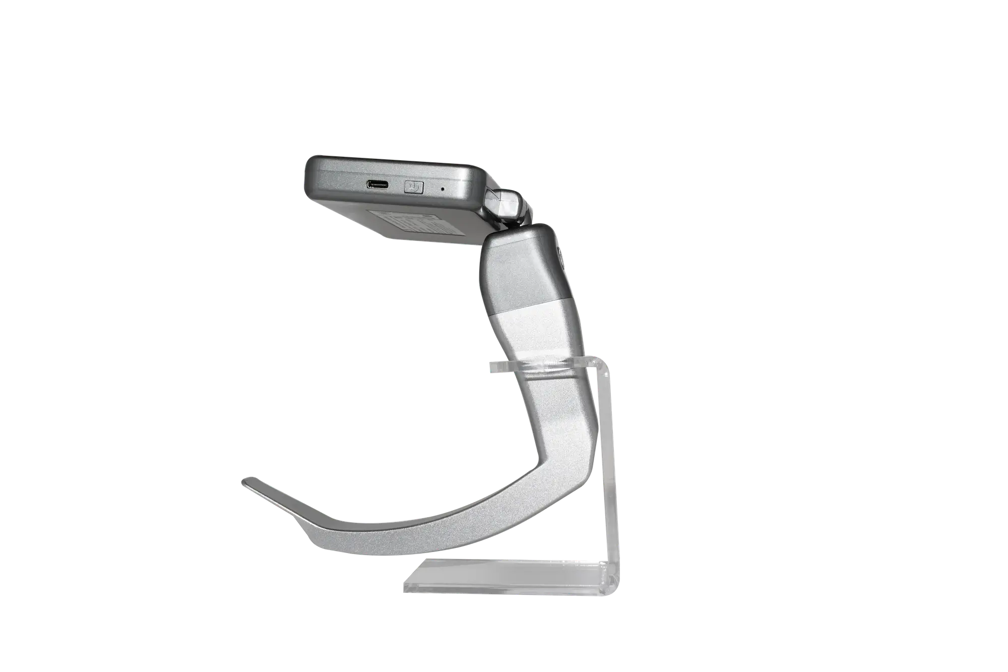 A Lâmina Stylet é um acessório projetado para auxiliar a intubação em pacientes com anatomia desafiadora ou limitação de abertura bucal. Seu ângulo pode ser ajustado antes do procedimento, proporcionando maior precisão e facilitando a condução do tubo sob visualização direta pela tela de 4,5″.